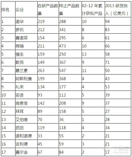 17 家跨國藥企 2013 研發(fā)金額排行榜