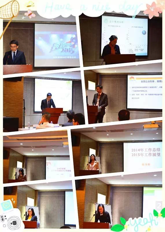 緊接著,陳總經(jīng)理對2014年工作作了整體回顧和總結(jié),同時對公司各部門在2014年工作中取得的成績給予了肯定,對公司在2015年的發(fā)展前景和目標進行了整體規(guī)劃,號召全體員工全力以赴,實現(xiàn)新一輪的業(yè)績提升。